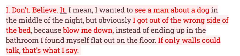 The first four words, or rather the way they’re presented, is just lazy writing in my opinion2. Maybe the first time anyone did that it was different and made the reader sit up and take notice, but these days it’s so ubiquitous that it has surely lost its impact.