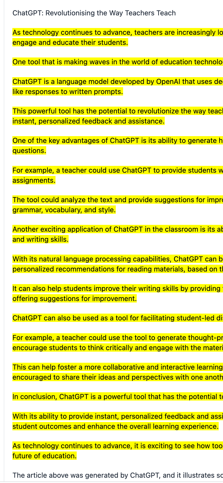 I decided to also try parsing the text through AI detectors. These were featured on Richard Byrne’s excellent website, Free Technology for Teachers: