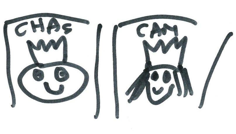 Being a "semi-Brit" as you so aptly described me, I love the lifelike drawings of Chas and Cam. So exciting to be a part of the festivities, even if only in front of a screen. But the real gem of this post is your selfie!