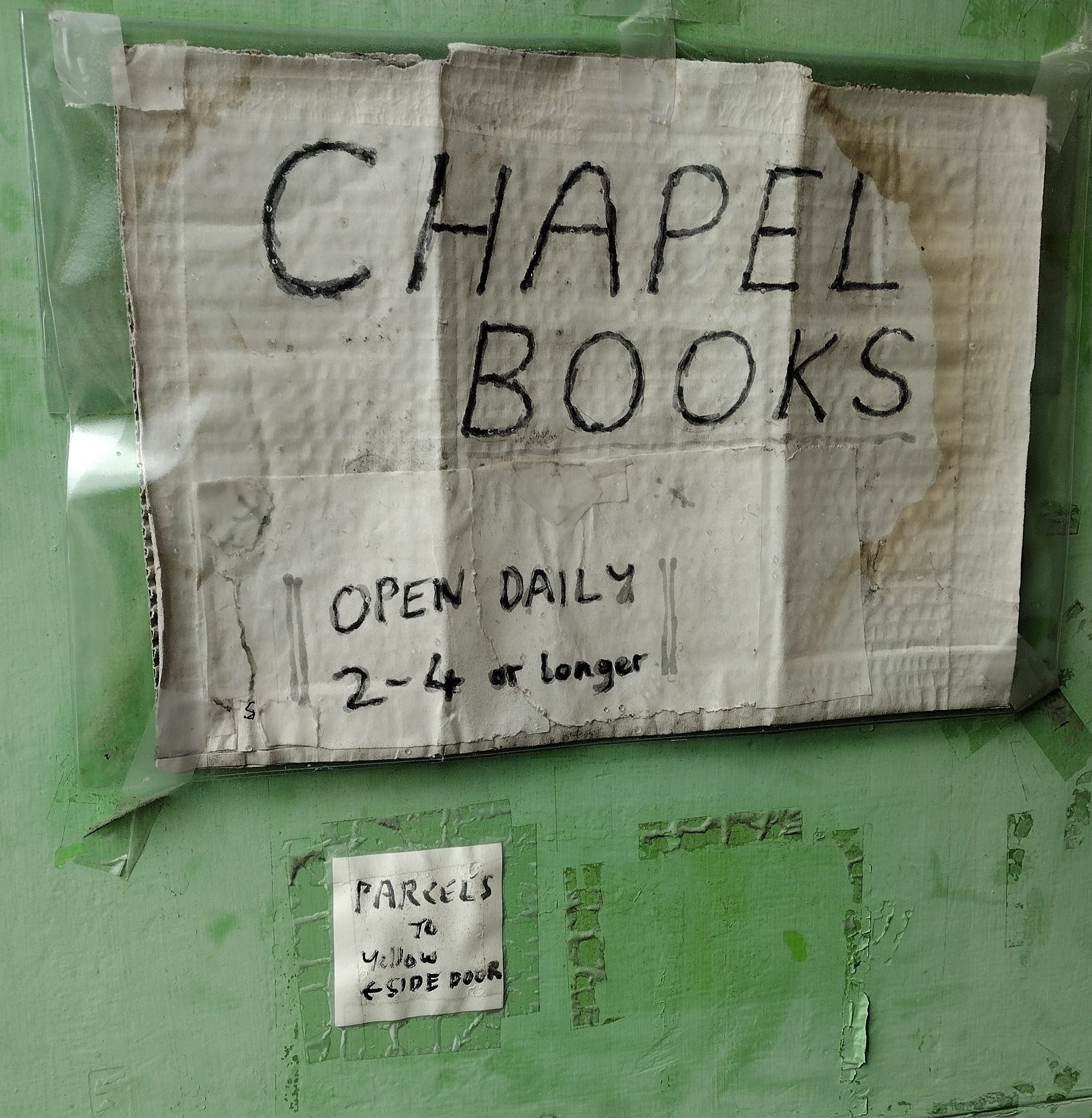I always enjoy visiting Chapel Books partly because it has such an air of eccentricity. A sign on the entrance exemplifies this:
