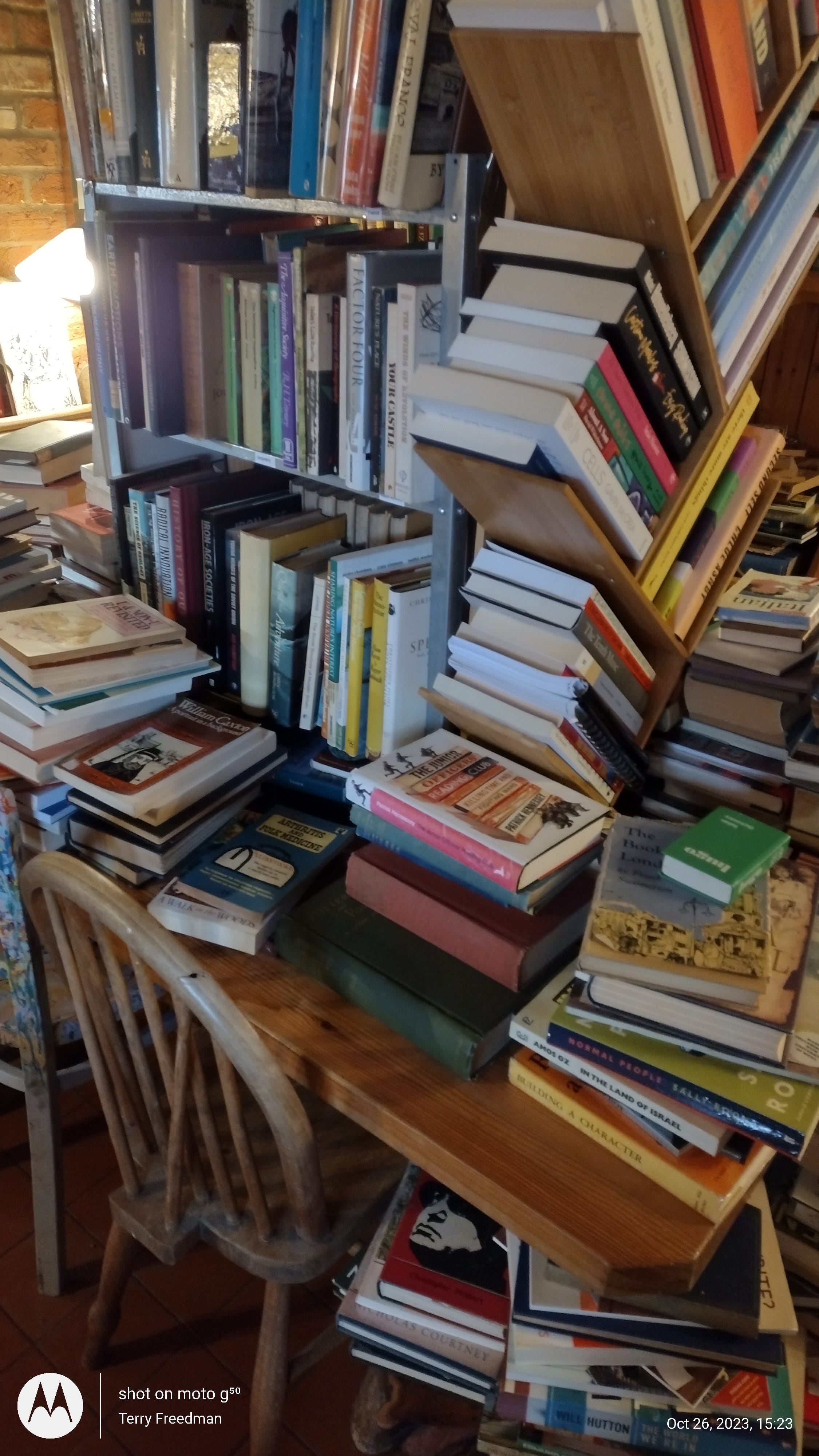 Ty and I chatted about books’ lives. That was inspired by my seeing an inscription in a gardening book along the lines of “To my darling husband on our first wedding anniversary.” The book was at least 52 years old, and we had a discussion about what happened to those newlyweds over the course of a lifetime? What had happened for this book to end up in a shop? And how sad it is when lovingly curated personal libraries are broken up.