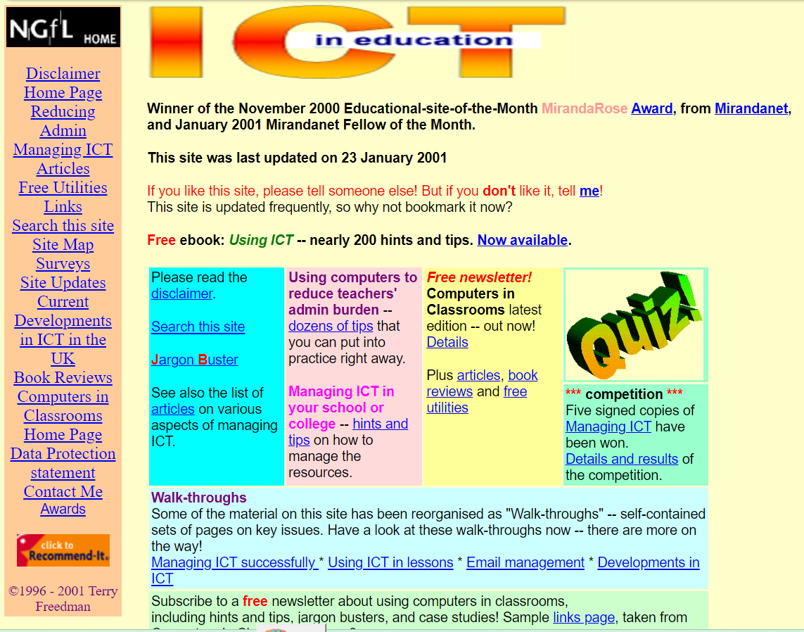 The education website I alluded to above looked like this in 2001: